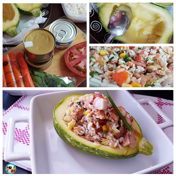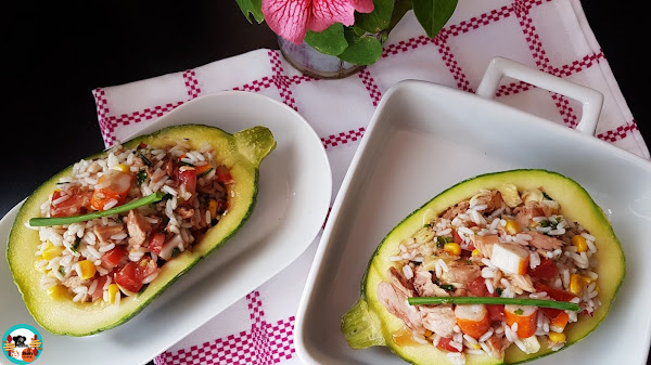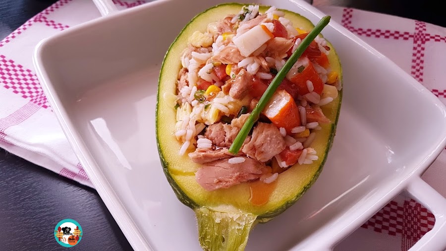 Hoy toca comer verduras de una forma saludable, unos calabacinos o calabacines rellenos de ensalada de arroz con muchas cosas ricas.
