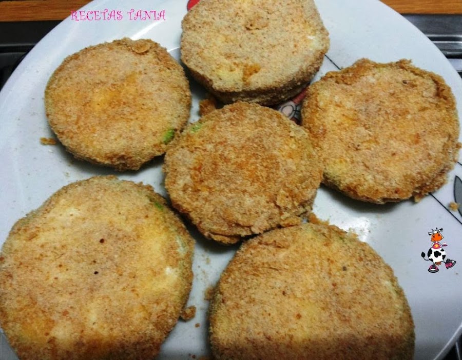 Lavamos y cortamos en rodajas finas los calabacinos,salpimentamos y colocamos encima de las rodajas de los calabacinos unos trocitos finos de queso feta y tapamos con otra rodaja de calabacino.Pasamos por harina,luego por huevo batido y luego por pan rallado. Hacemos eso con todos los calabacinos rellenos de queso feta. Freímos en abundante aceite de oliva,una vez frito los ponemos sobre papel de absorbente y luego emplatamos.