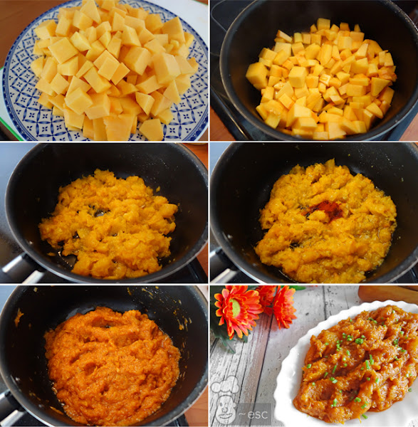 * Para obtener esa cantidad de pulpa limpia sin semillas ni piel, hay que comprar trozos de calabaza o una calabaza entera de aproximadamente 800 g. Una vez que le quitemos la piel y las semillas, tendremos la cantidad correcta. De todas formas, es un poco orientativo y la receta se puede hacer al ojo, modificando los ingredientes como más nos guste.