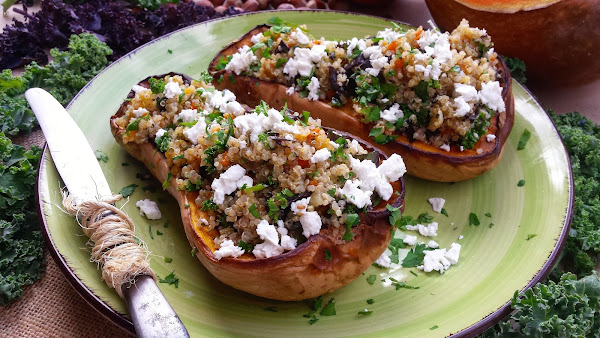Calabaza rellena de quinoa, col kale y verduritas, ingredientes: