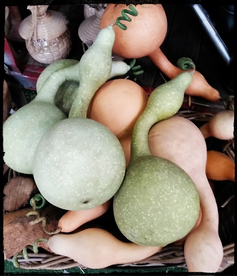 La calabaza del peregrino o calabaza del vinatero es una variedad con forma de botella estrangulada que una vez seca puede utilizarse como recipiente.