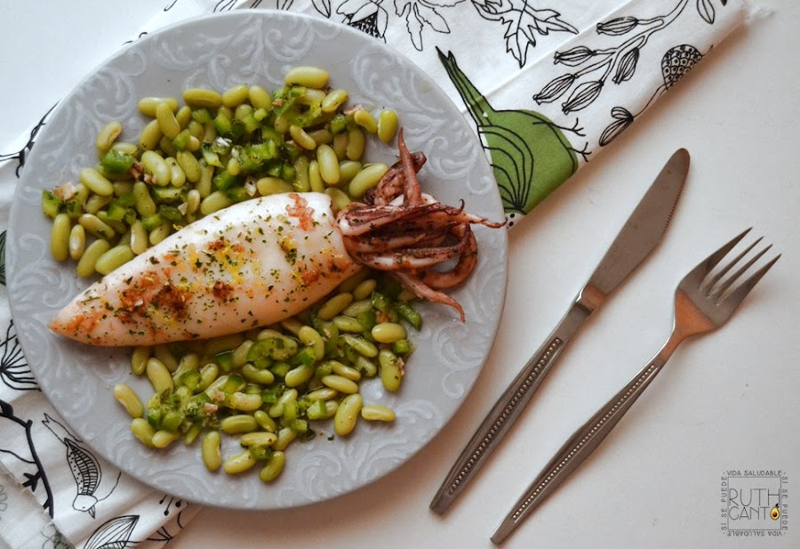 Lo acompañé con unas alubias verdinas que me traje de Gijón, en nuestra visita a mi amiga Erika de Detalles Dulces.