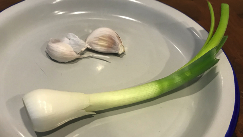 Decora con un poco de perejil fresco picado y la parte verde de la cebolleta.