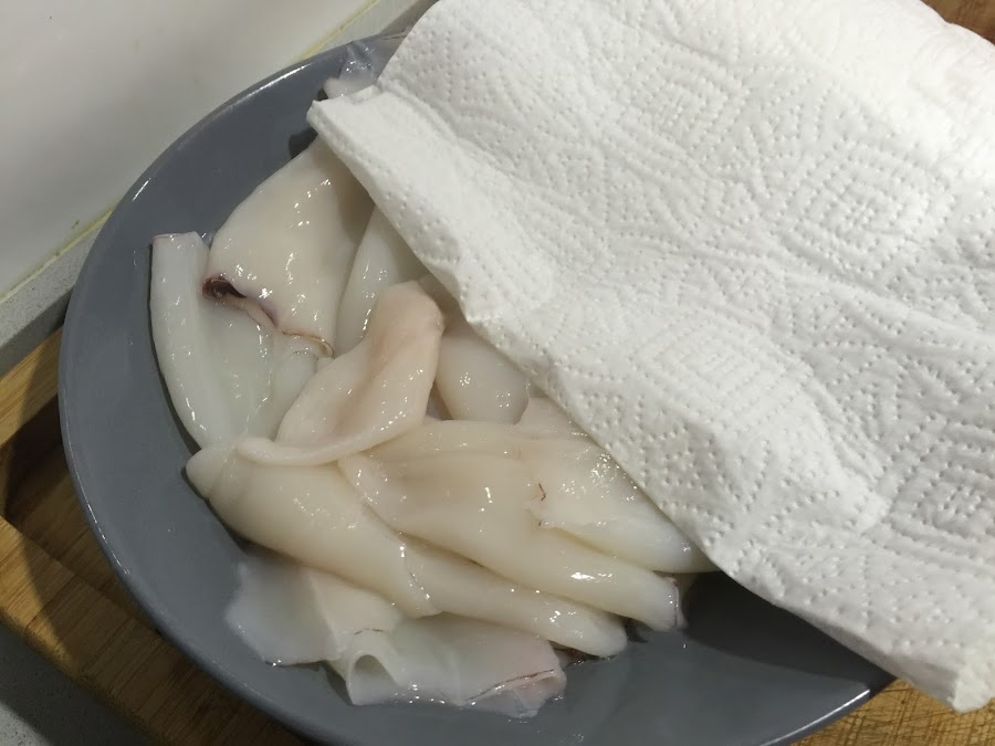 1. Lo primero que debemos hacer es pedir a nuestro pescadero de confianza que nos limpie los calamares. Resulta laborioso y lleva un tiempo, a veces, si son demasiado pequeños no los limpian, aunque yo no puedo quejarme siempre los dejan bien limpitos.