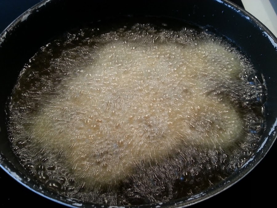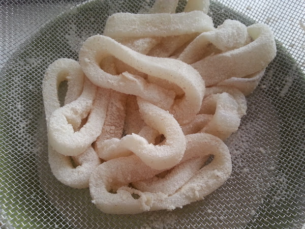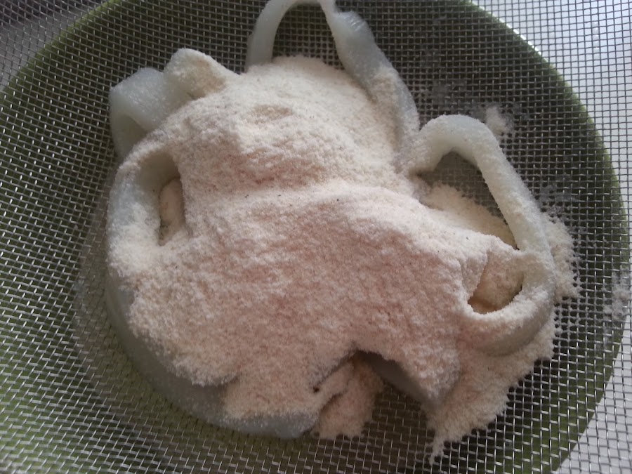 Como ya os conté en su día, existe aquí una harina especial para freír, es una harina más gruesa que la normal, y hace que los fritos queden estupendo, espero que podáis encontrarla fuera de andalucía.