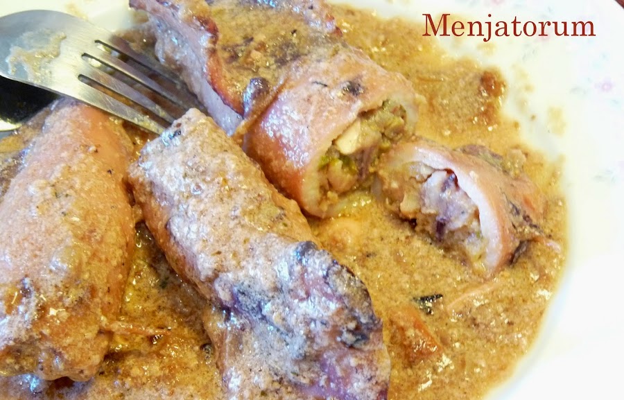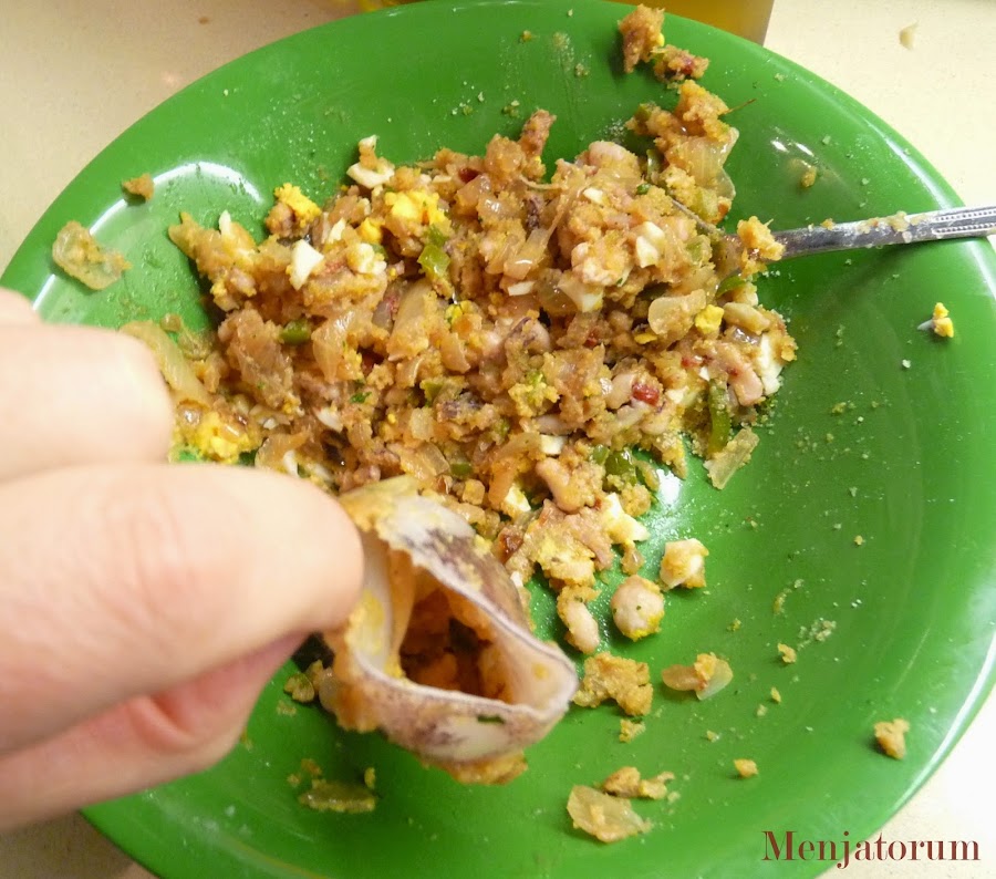 Están hechos con un relleno simple, con sus mismos tentáculos, huevo hervido picado y cebolla pochada. pero admiten variedad de rellenos, ya sea con cualquier tipo de pescado,gambas o bien, con carne picada.