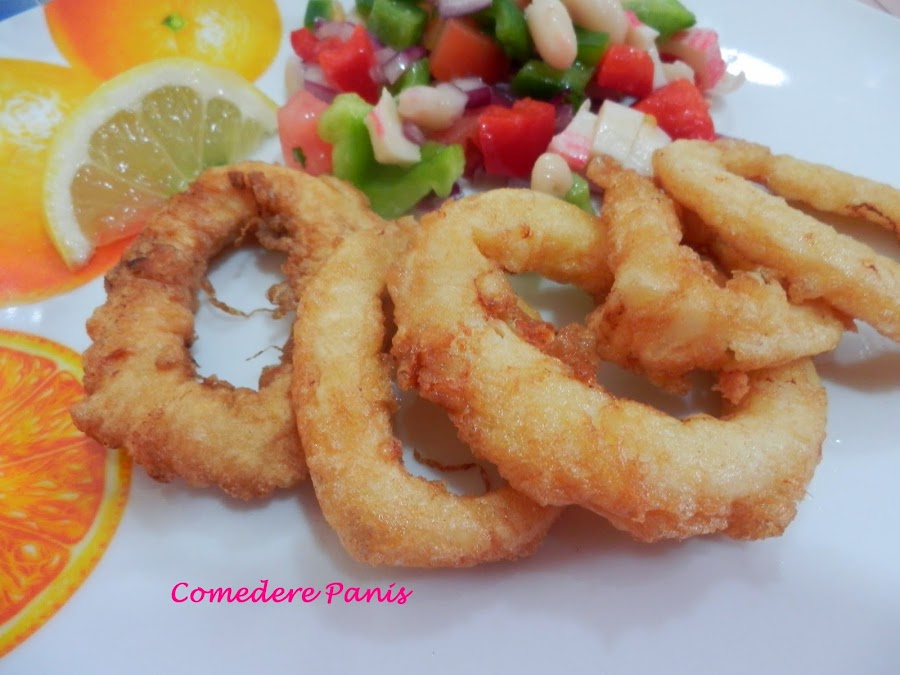 Si hemos comprado los calamares enteros lo primero es limpiarlos y cortarlos en anillas, en esta ocasión en la pescadería lo han hecho por mí y ¡yupi! trabajo que me ahorro.