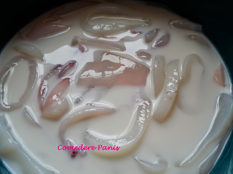 Colocamos los calamares en un bol y los cubrimos de leche, los dejamos en leche una media hora.