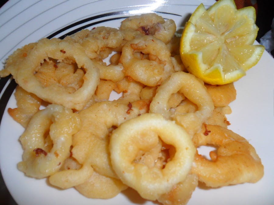 6º - Una vez fritas las anillas , sacamos de la sartén , escurrimos el aceite en un plato con papel absorbente y ya estarán listas para comerlas rociándolas con limón .