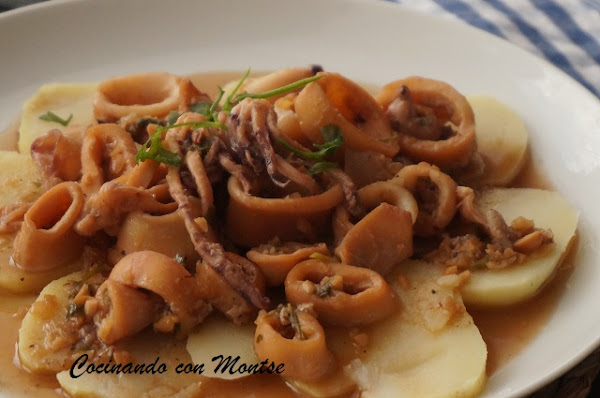 Hoy os propongo una receta de calamares en salsa de almendras, una receta sencilla y con mucho sabor. Podemos utilizar para este plato los calamares congelados, pero si los utilizáis frescos la receta quedará muchos más buena, por el sabor tan bueno que tiene el calamar.