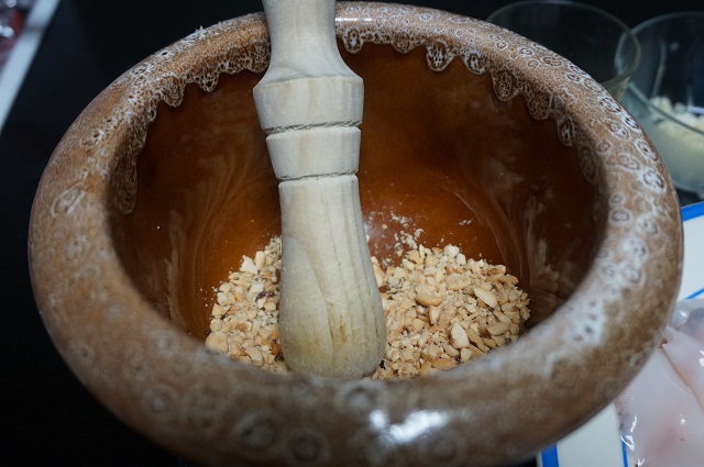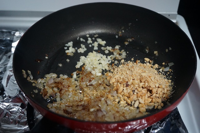Cuando la cebolla esté pochadita y con un poco de color, pondremos las almendras picadas.