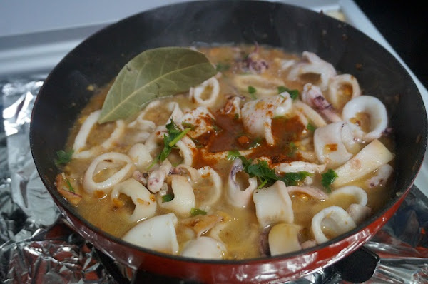 Dejamos cocer los calamares unos 30 minutos. Pasado este tiempo lo probamos de sal y rectificamos.