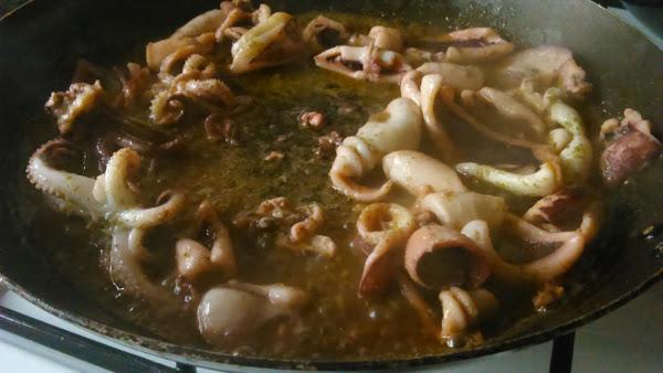 Si nos queda demasiado líquido en la sartén, sacamos los calamares y reducimos la salsa.
