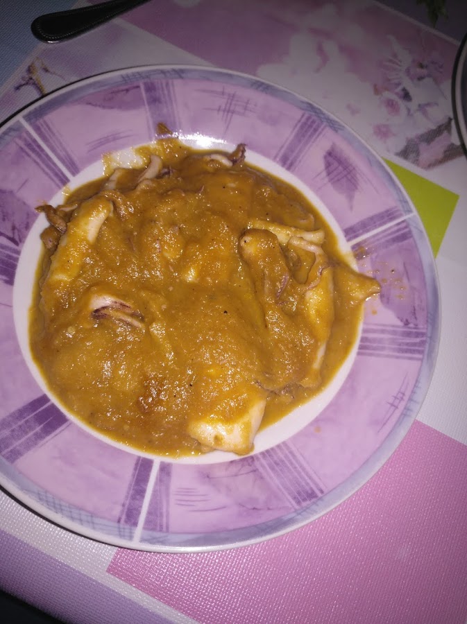 Una vez que el alcohol haya reducido, sacamos todo en un vaso para la batidora. Ahora metemos en la olla los calamares para que se vayan haciendo, mientras batimos los ingredientes antes mencionados. Cuando veamos que los calamares no se vean crudo, añadimos la salsa y lo removemos un poco para que quede todo impregnado y los calamares coja el sabor.