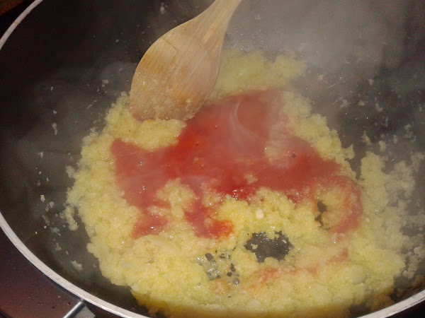 Añadimos el tomate y dejamos cocer 5 minutos más.