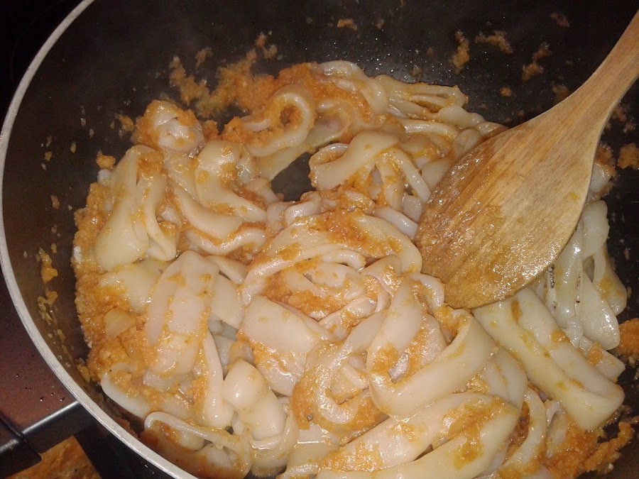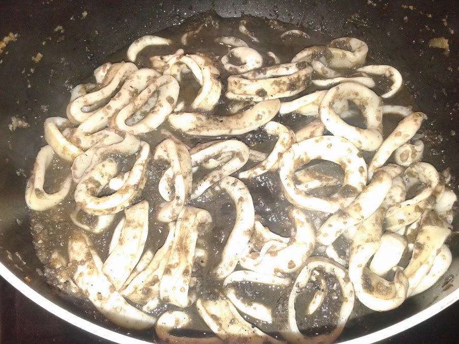 Pasado este tiempo añadimos las anillas y las rehogamos bien durante 5 minutos más.
