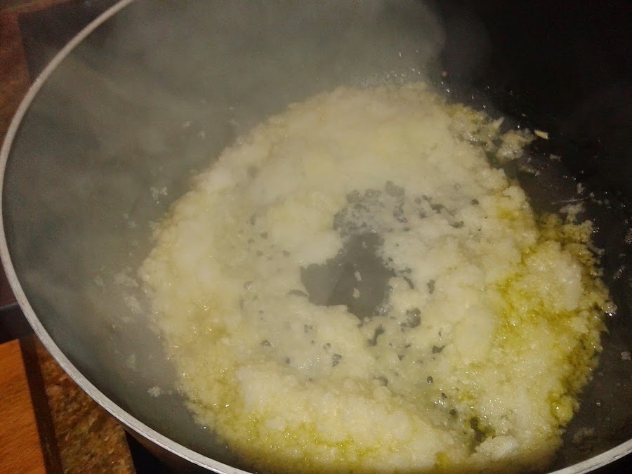 Y los añadimos a la cazuela en la que habremos calentado bien el aceite. Pochamos 10 minutos a fuego medio.