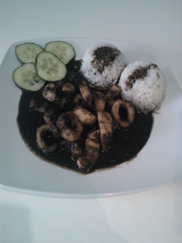 Una vez machacado, le incorporamos la tinta de calamar, el vino, el agua y reservamos.
