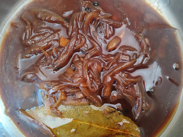 No ves las cosas hasta que otro la ha „visto“ antes; ahí está el arte de algunos creativos de la cocina...encebollado, casi siempre sabor dulce, hay quienes le ponen azúcar a la cebolla caramelizada que es una barbaridad. Entonces a la cebolla le pones vino dulce y lo mismo te sirve para una carne, que es lo habitual, pero que el „pelotazo“ está en hacerla con calamares frescos: El ingenio de Carmona“