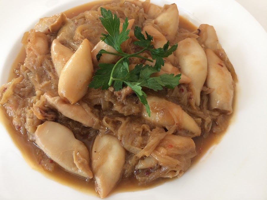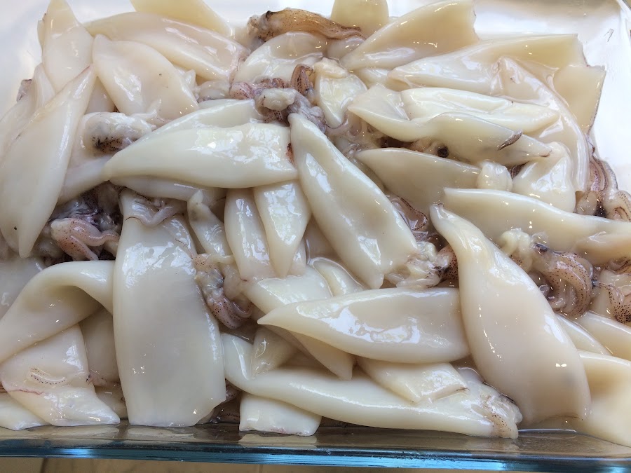 Limpiamos los calamares y los lavamos.