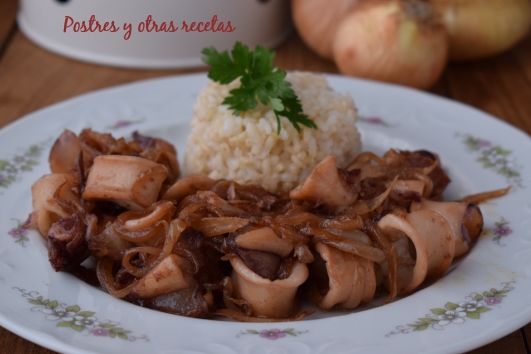 En esta ocasión hemos acompañado nuestros Calamares encebollados de un rico arroz en blanco integral.