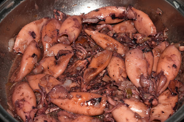 Removemos de vez en cuando, hasta que estén y rectificamos de sal si fuese necesario y listos nuestros calamares encebollados.