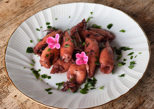 Hoy he visto estos calamares en la pescadería y sin pensarlo los he comprado los he preparado encebollados, son un tipo de calamar algo mas pequeños que los otros pero me gustan para prepararlos así, lo mismo sirven para una tapa que un segundo plato acompañado de una ensalada de tomate y pepino, como la voy a hacer yo hoy.