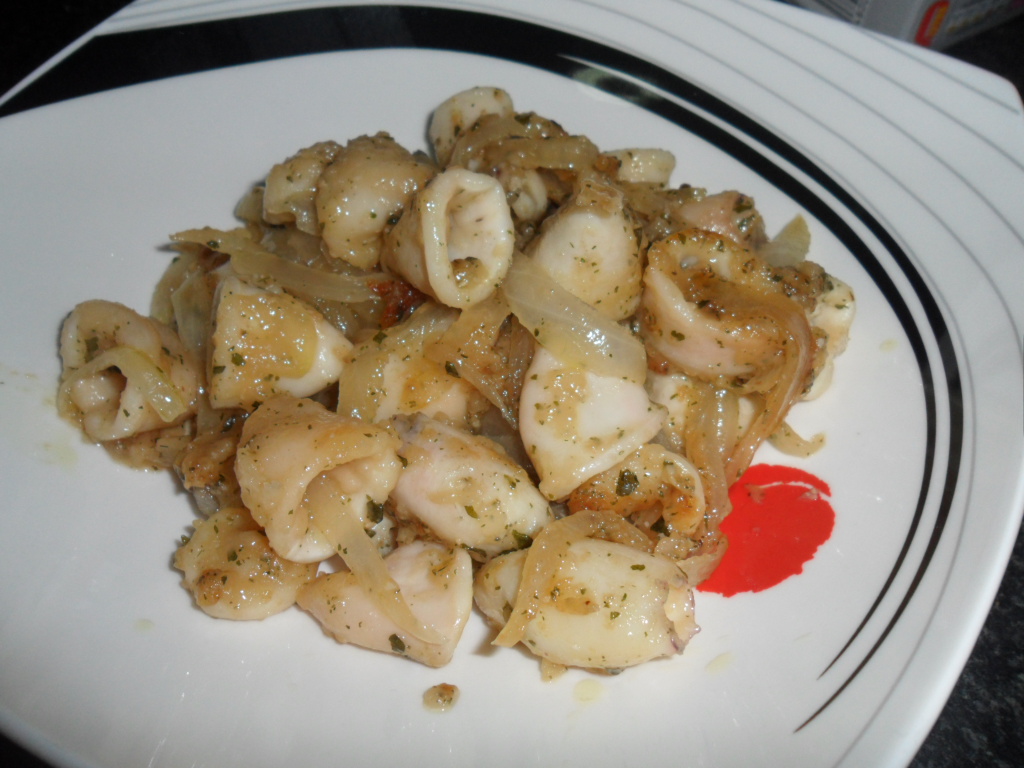 1º - Limpiamos bien los calamares con agua , los escurrimos y los disponemos en un plato para reservar hasta la hora de cocinarlos .