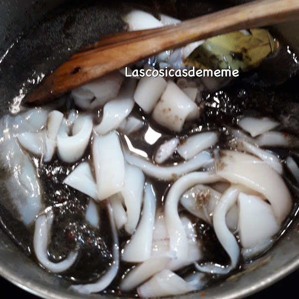Hasta que veamos que el caldo a tomado textura y los calamares cocidos, si hiciera falta añadir más líquido, pero sin pasarse...