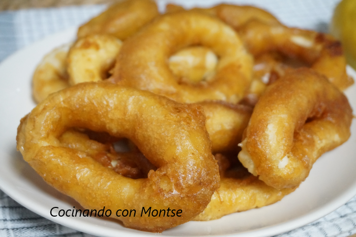 Vamos añadiendo los aros de calamar en la masa en tandas.