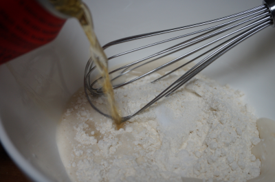 Tendremos un rato el bol en la nevera con la harina que esté bien fría, sacamos y añadimos la sal y el bicarbonato. Tendremos la cerveza bien fría a ser posible la pondremos antes de utilizarla unos 10-15 minutos en el congelador.