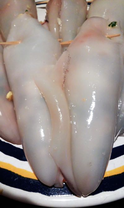 Rellena los calamares y sujeta la parte superior con un palillo para que no se salga el relleno.
