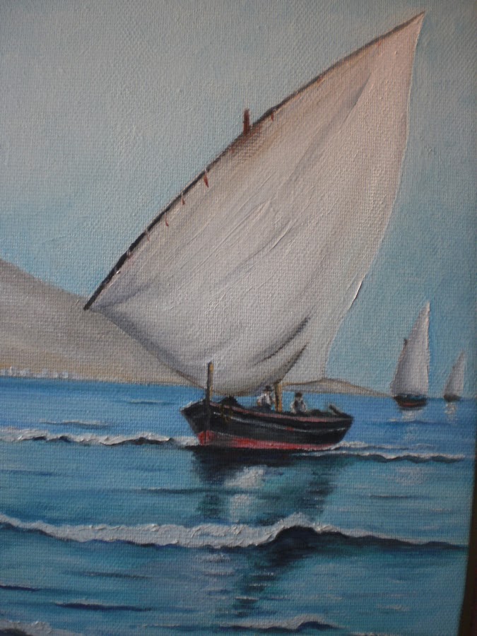 Un ligeroviento de poniente levanta pequeñas olas, ?pañuelitos? blancos en el horizonte que mecen las pequeñas ?bacas?, esos barquitos pesqueros que salieron de ?madrugá? de Fuengirola, arrrastrando sus redes en los fondos, faenando y capturando merluzas, ? bacalaillas?, ?pijotitas?, lenguados, gambas, pulpos, rapes, ?caramales? y todo animal marino que encuentren a su paso; lentamente, van navegando rumbo a su puerto.