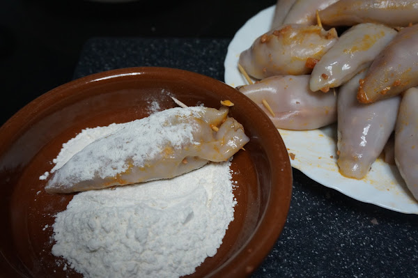 Cuando los tengamos todos rellenos los pasamos por harina.