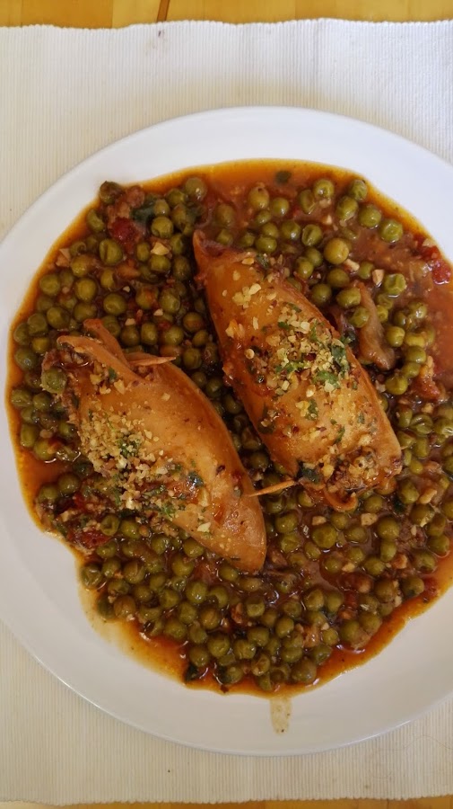 Esta sí que sí es una receta que me recuerda mucho a cuando era pequeña y mi madre preparaba esta receta. En aquella época era una receta de lujo: los calamares eran un producto caro y no siempre se encontraban en las pescaderías.