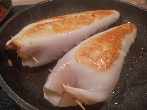 Como nuestro pescadero es un ser amable y profesional, habrá aceptado nuestra petición de limpiarnos bien los calamares, separándonos las aletas y los tentáculos. No está de más darles un buen lavado en casa y secarlos bien mientras preparamos el relleno.