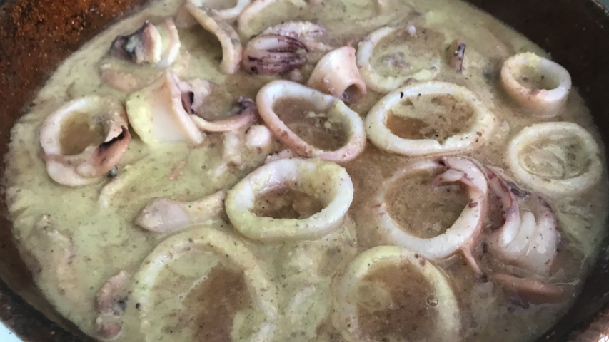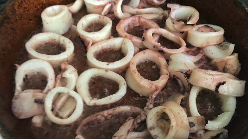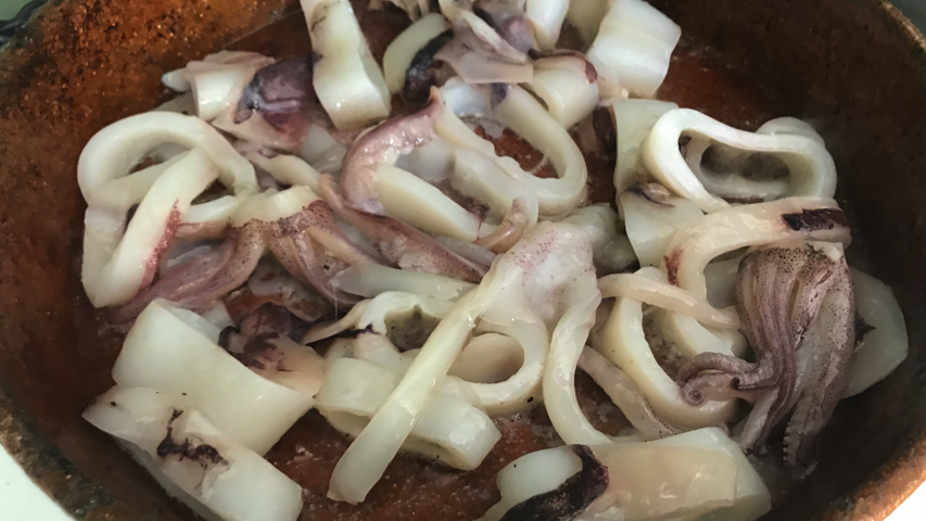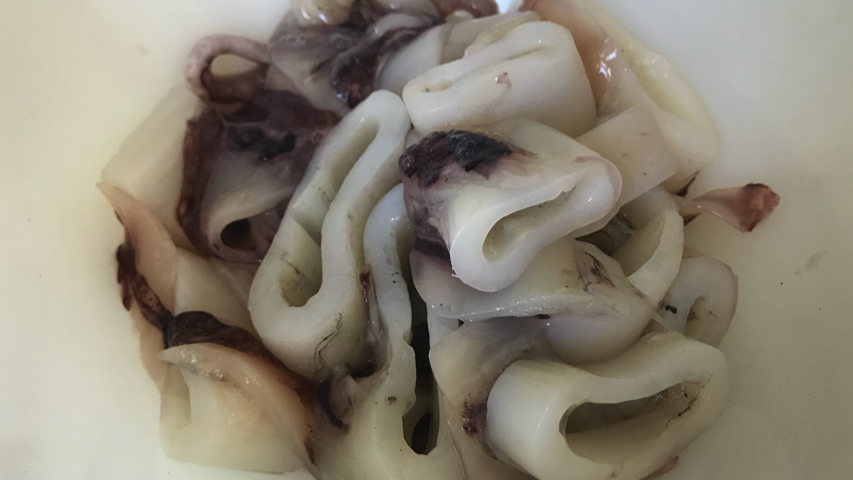Limpia los calamares y córtalos en rodajas.