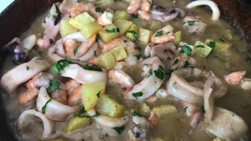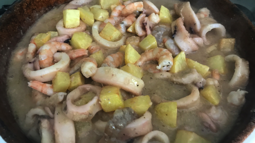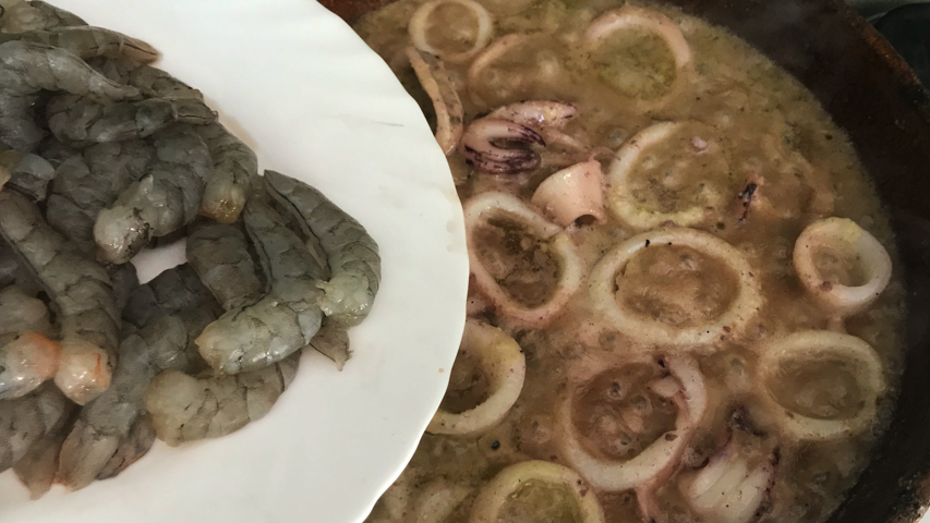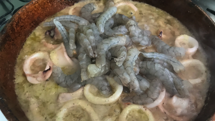 Introduce los langostinos en el guiso. Mezcla.