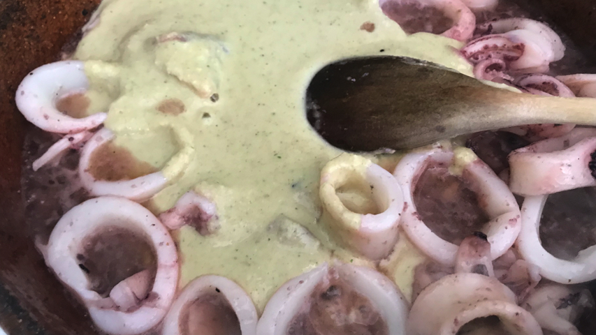 Sofríe los calamares en la cazuela.