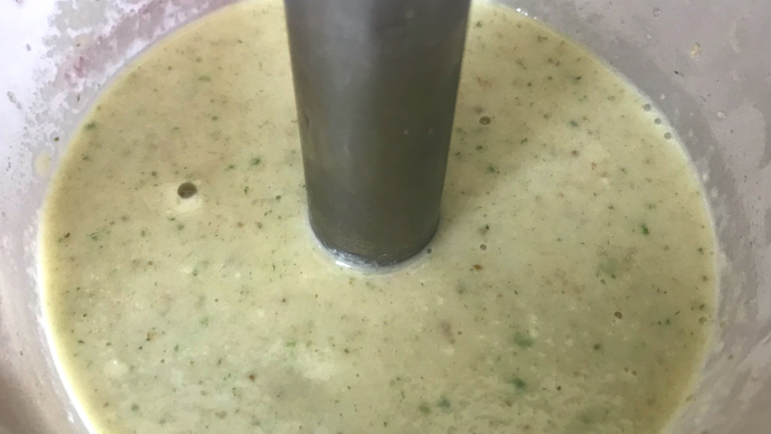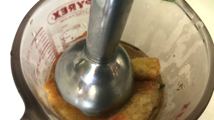 Añade al vaso una cucharadita de postre de comino molido, sal a tu gusto, un vaso de agua y tritura hasta que quede una salsa fina. Si es necesario añade más agua. Reserva.