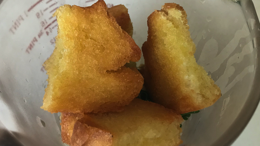 Fríe también un poco de perejil que se hará en seguida. Ponlo también en el vaso (o mortero).