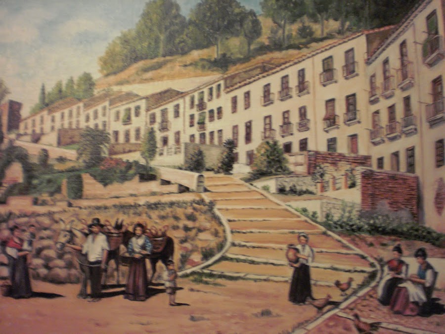 Y acompañando la receta, les dejo una imagen malagueña, éste cuadro pintado por mi suegro ( otro artista malagueño) que cuelga en su casa. Es la tristemente desaparecida “Coracha” malagueña, viviendas situada al pie del Monte Gibralfaro, de la que hace mención Arturo Reyes en el titulo de uno de sus libros.