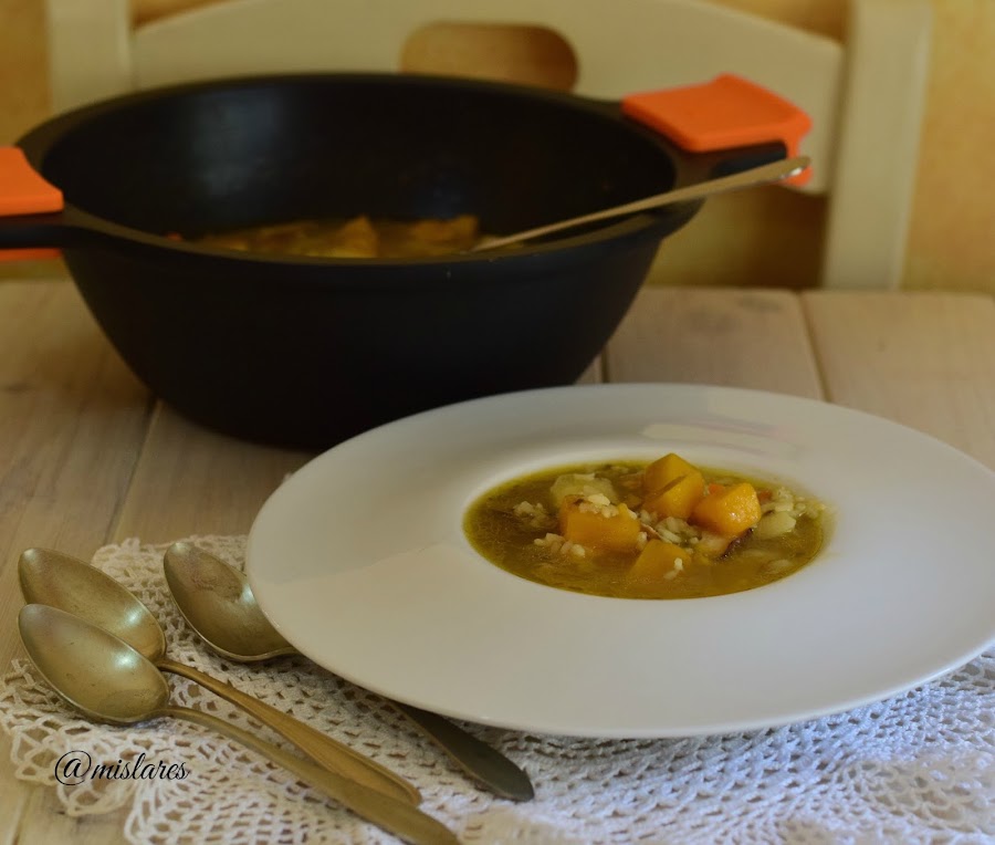 3. Añadimos la calabaza cortada a cuadraditos y sofreímos junto con la verdura unos minutos.