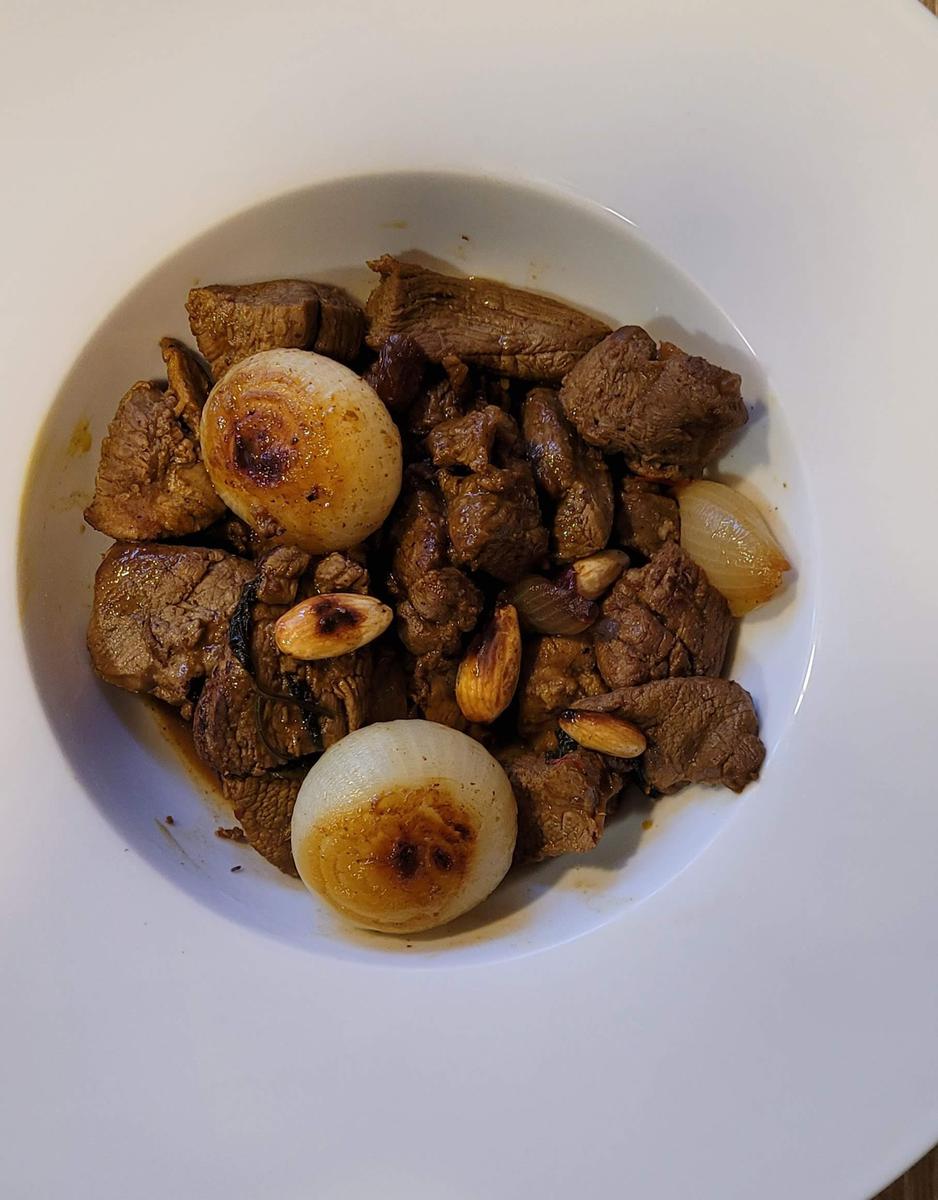Este es un plato que une tradición y buenos productos y el resultado es asombroso, un toque de uvas pasas le queda espectacular, el toque del vino blanco potencia el sabor y hace que la salsa tenga un color muy apetecible. Acompañé con una ensalada verde y arroz blanco.
