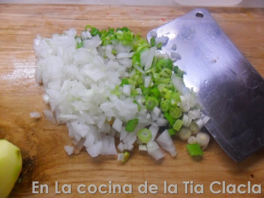 · Pique finamente las cebollas, el ajo, el tomate y el chile (si le gusta el picante).