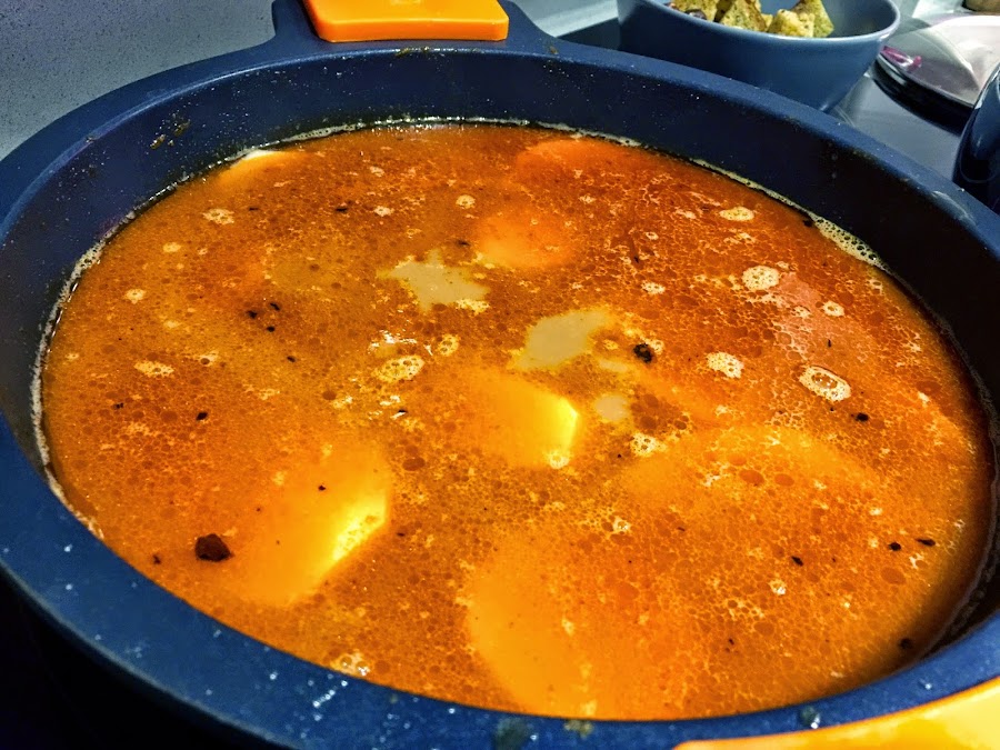 6. Cubrimos con agua, no mas agua de la que necesita. La justa para que cubra los ingredientes. A fuego medio dejamos que hierva durante 20 minutos.