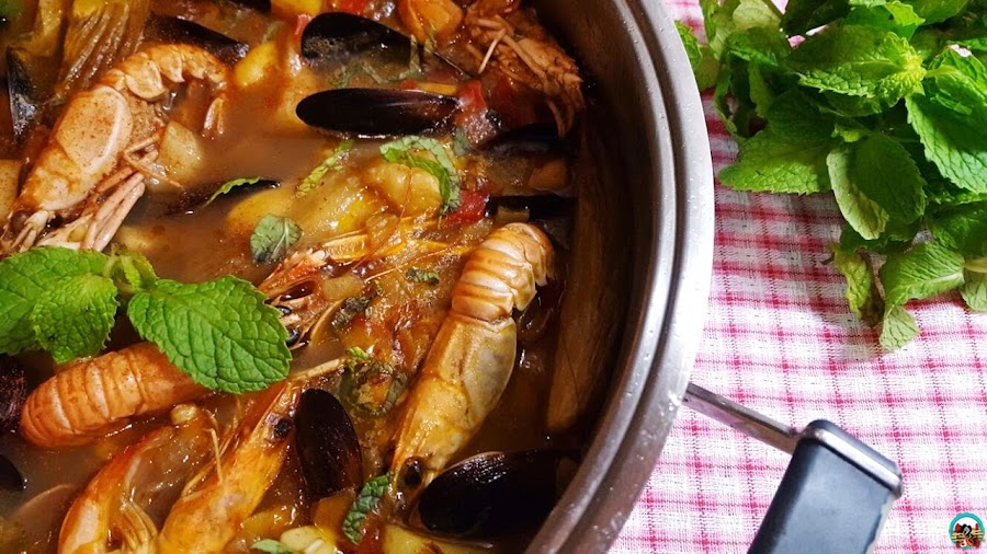 Consejo:La hierbabuena le da un toque especial al guiso de mariscos. Es muy aromática y sabrosa. Si no te gusta su sabor, puedes cambiar la hierbabuena por perejil o cilantro fresco picado. Si quieres, también puedes esparcir un poco de pimentón por encima cuando ya esté reposado. Es un plato muy completo que puedes hacer en las comidas especiales o cuando baja un poco las temperaturas.