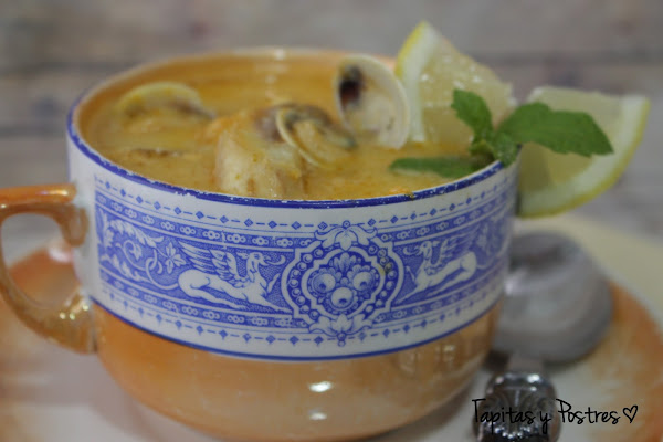 Servimos en tazas con un chorrito de limón y unas hojitas de hierbabuena.