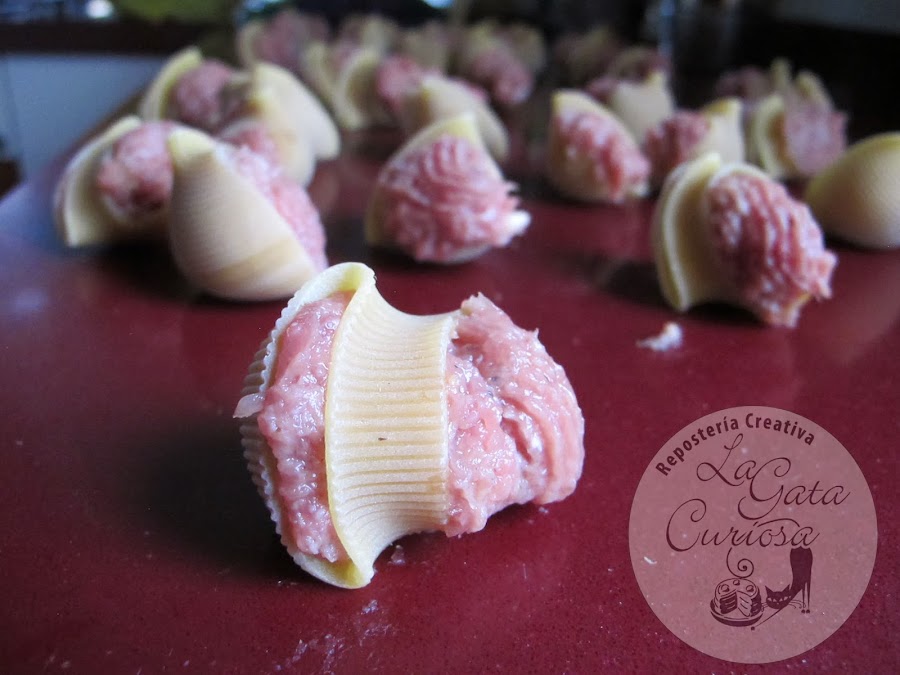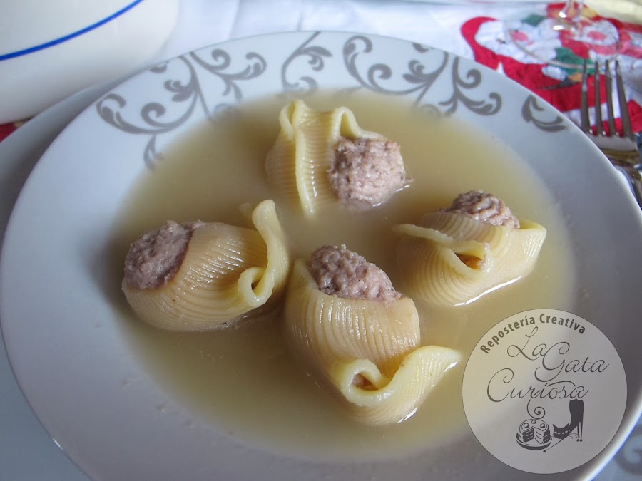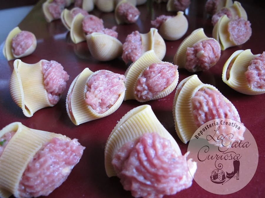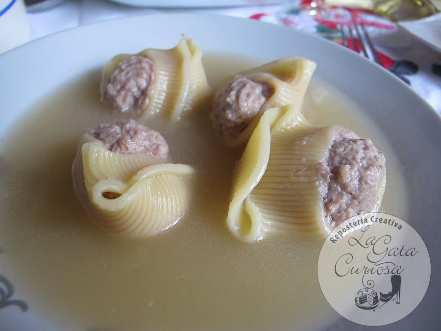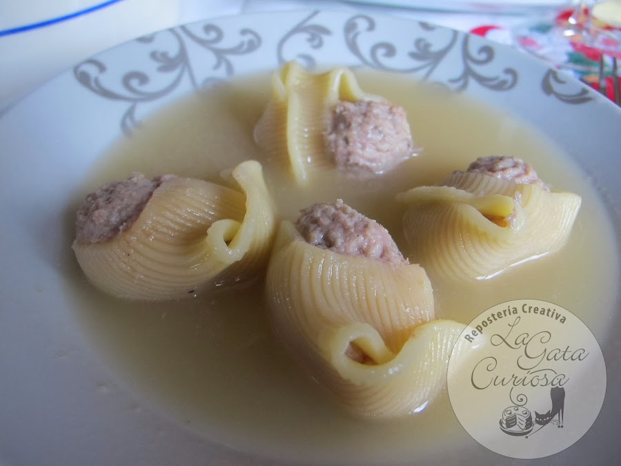 Tenía ganas desde hace mucho tiempo de preparar unas navidades unos Galets (tiburones, caracolas) rellenos y servirlos con caldo alguno de los días de las mismas, pero unos años por que no los encontraba y otros por pereza hasta ahora no los había preparado, son sencillos de preparar y quedan muy ricos y desde luego dan al caldo un toque elegante y diferente.