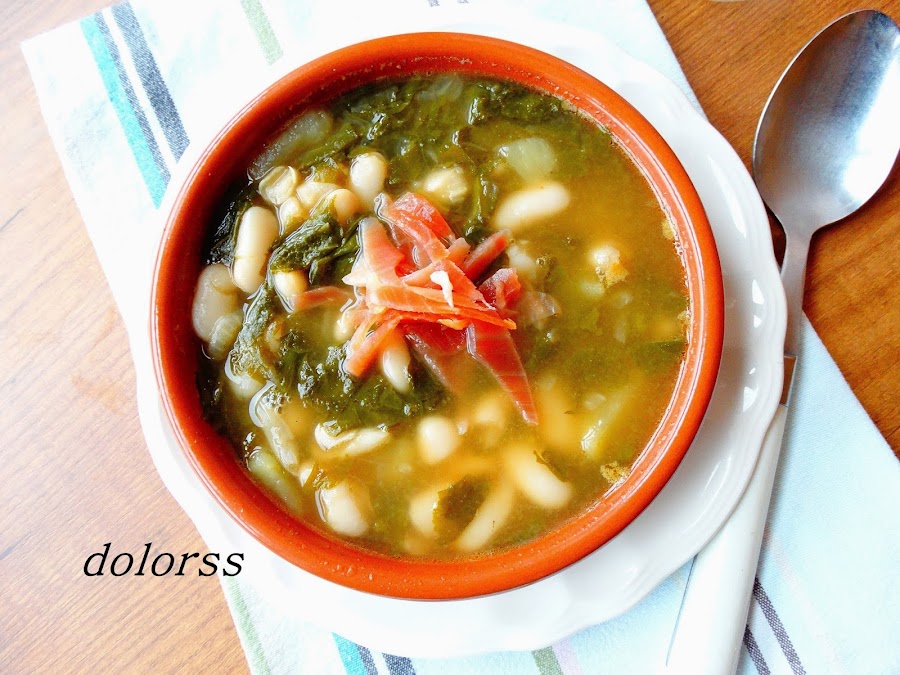 Cortar las nabizas en juliana e incorporarlas a la olla, agregar las judías cocidas, hervir de nuevo unos 10 minutos.